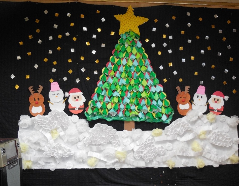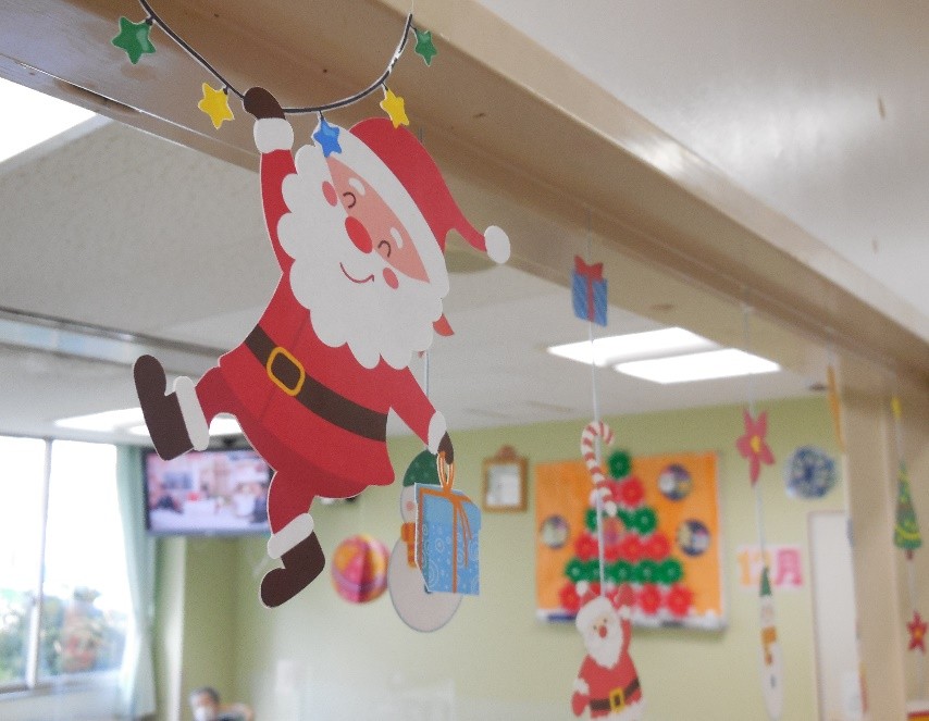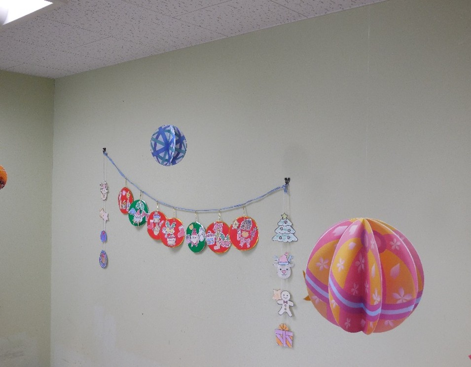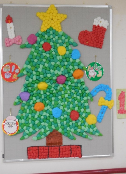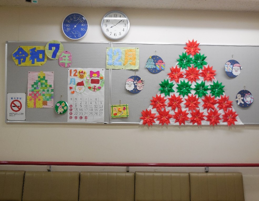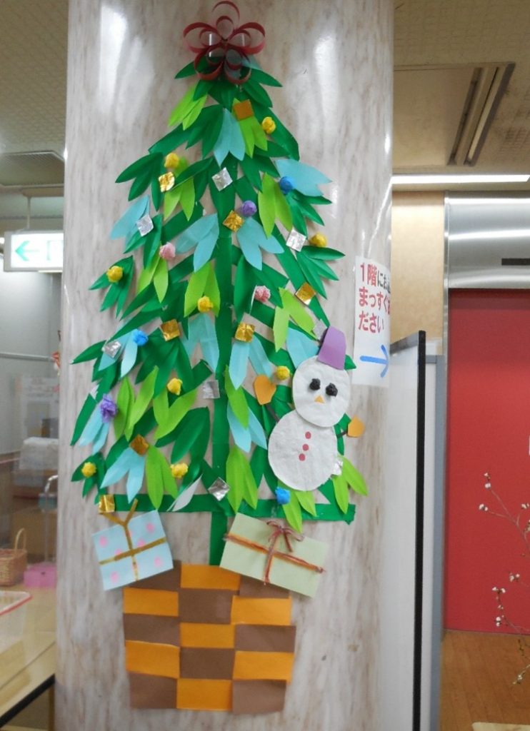 今年のクリスマスの壁飾りはツリーを利用者様と作成しました。